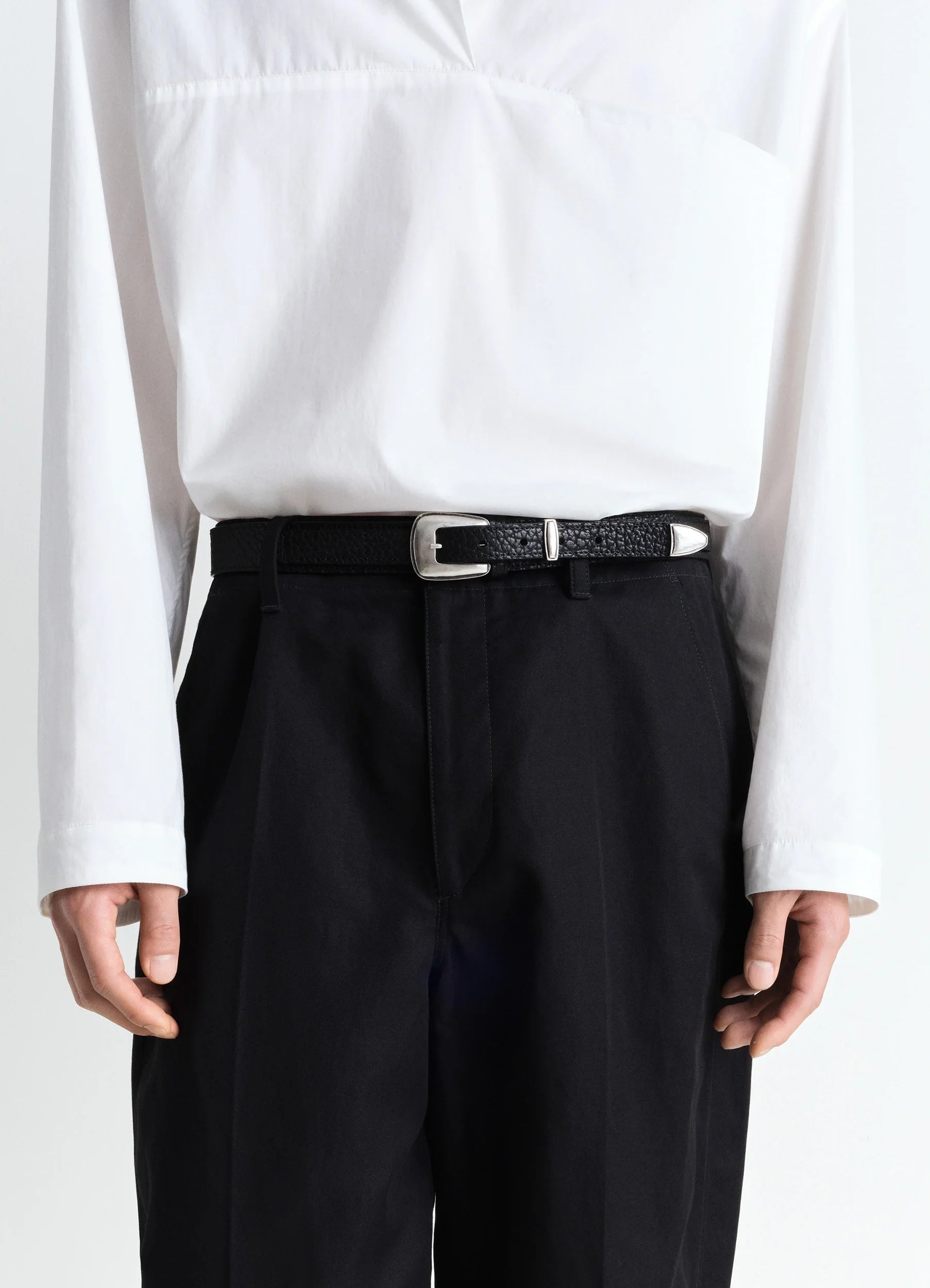 This western belt is a Lemaire wardrobe essential. Made from LWG Silver-certified grained leather, a thick, resistant material characterized by its textured look, it features a double fastening system.