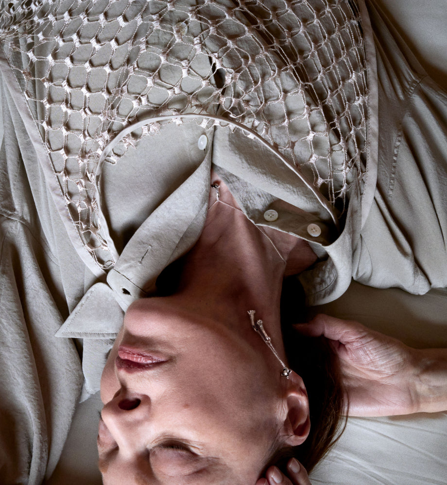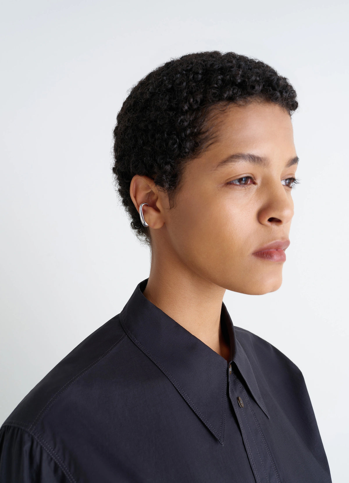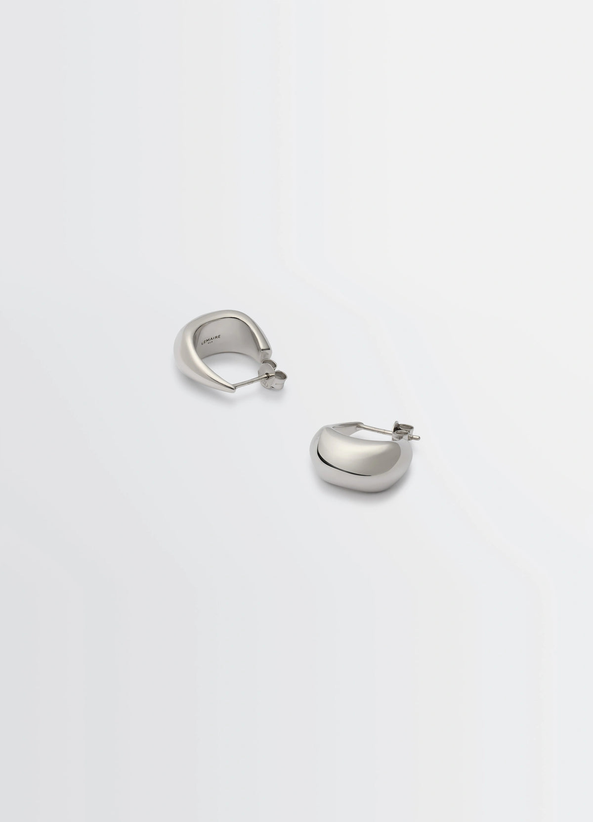 The Drop Collection, fluid lines and smooth finishes create a graceful interplay of movement and reflection. The Short Drop Earrings in silver exemplify this approach, offering soft curves that easily adapt to various ensembles. Their minimalist yet distinctive shape underscores LEMAIRE’s commitment to discreet refinement.