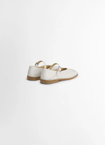 Ces chaussures sont d’emblématiques accessoires LEMAIRE. Inspirées de chaussons de danse, ces Ballerines sont confectionnées à partir de deux pièces de cuir nappa d'agneau lisse cousues l'une à l'autre, recouvrant la tige et le talon. Elles se ferment sur le haut du pied à l’aide d’une bride à boucle en métal. La finition brillante élève ces Ballerines vers une délicate élégance.