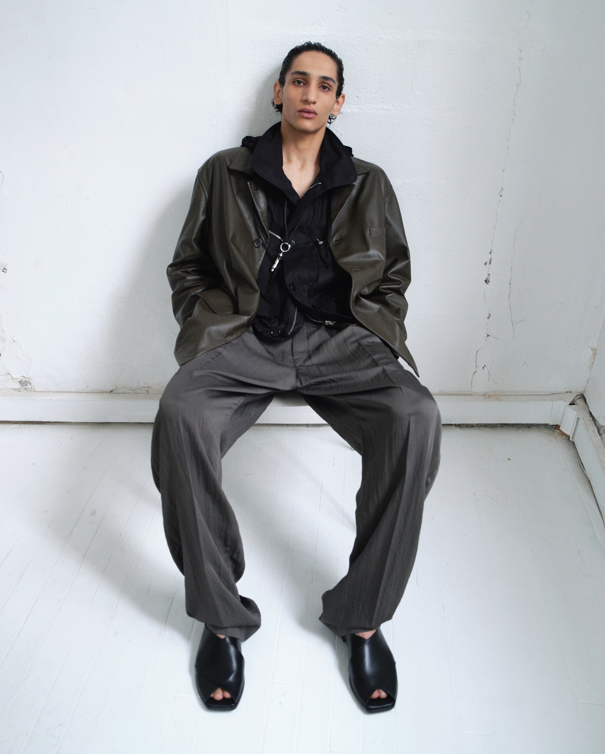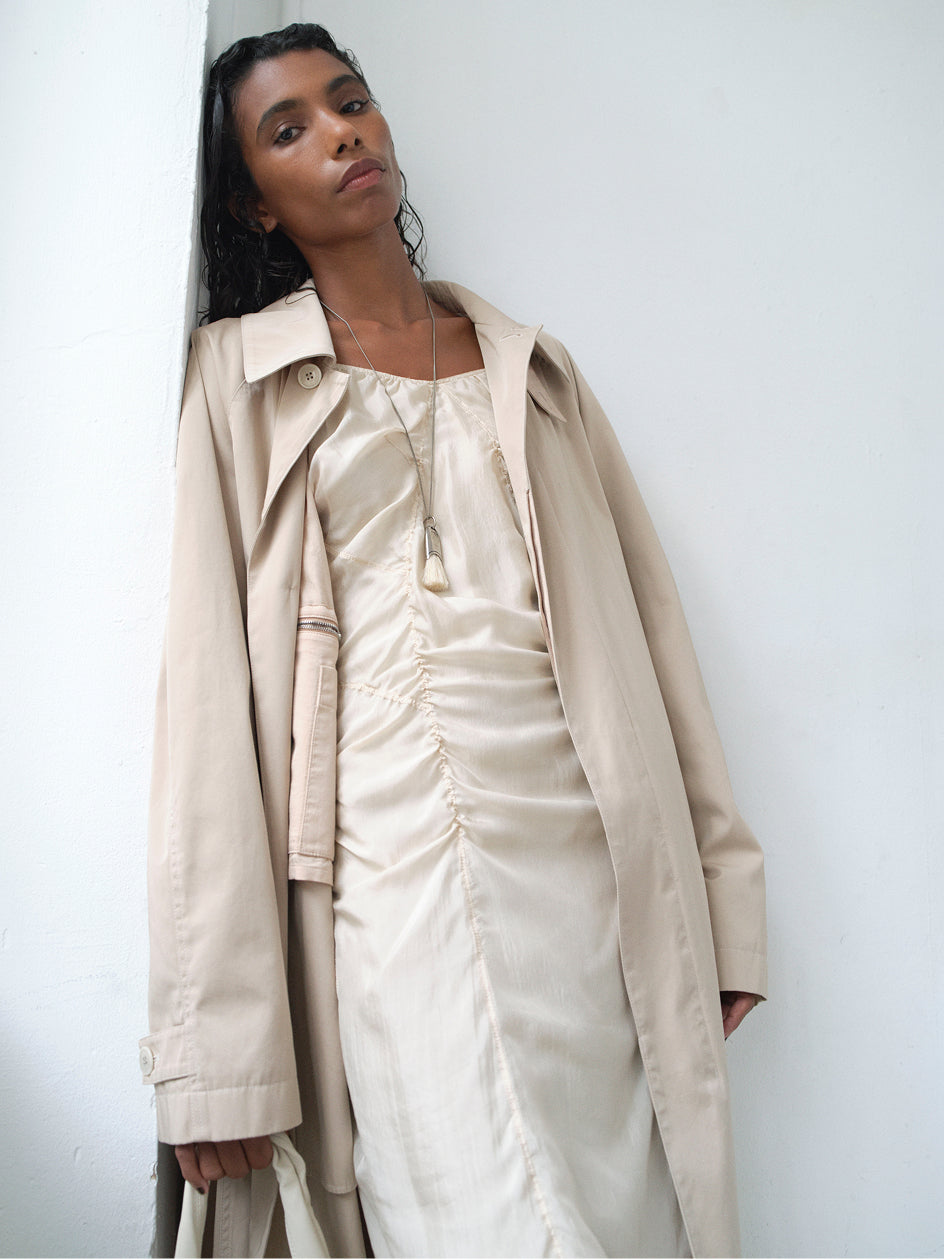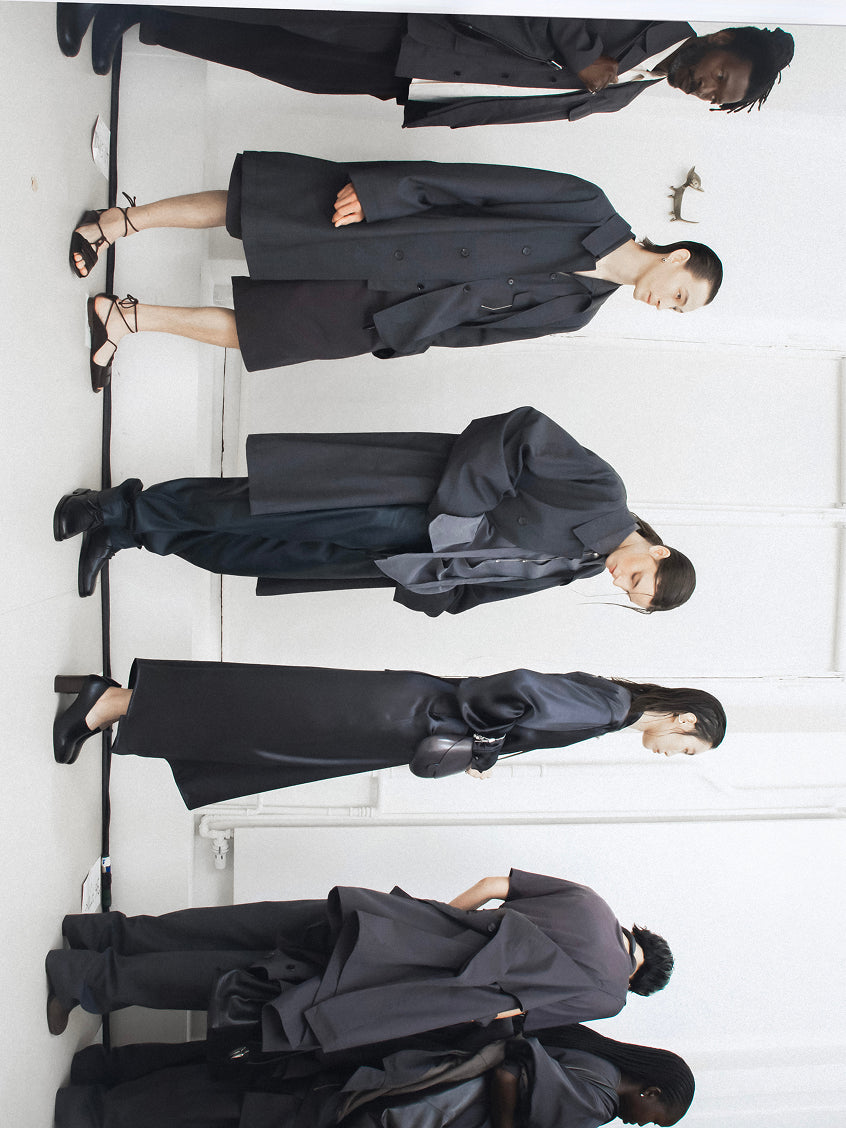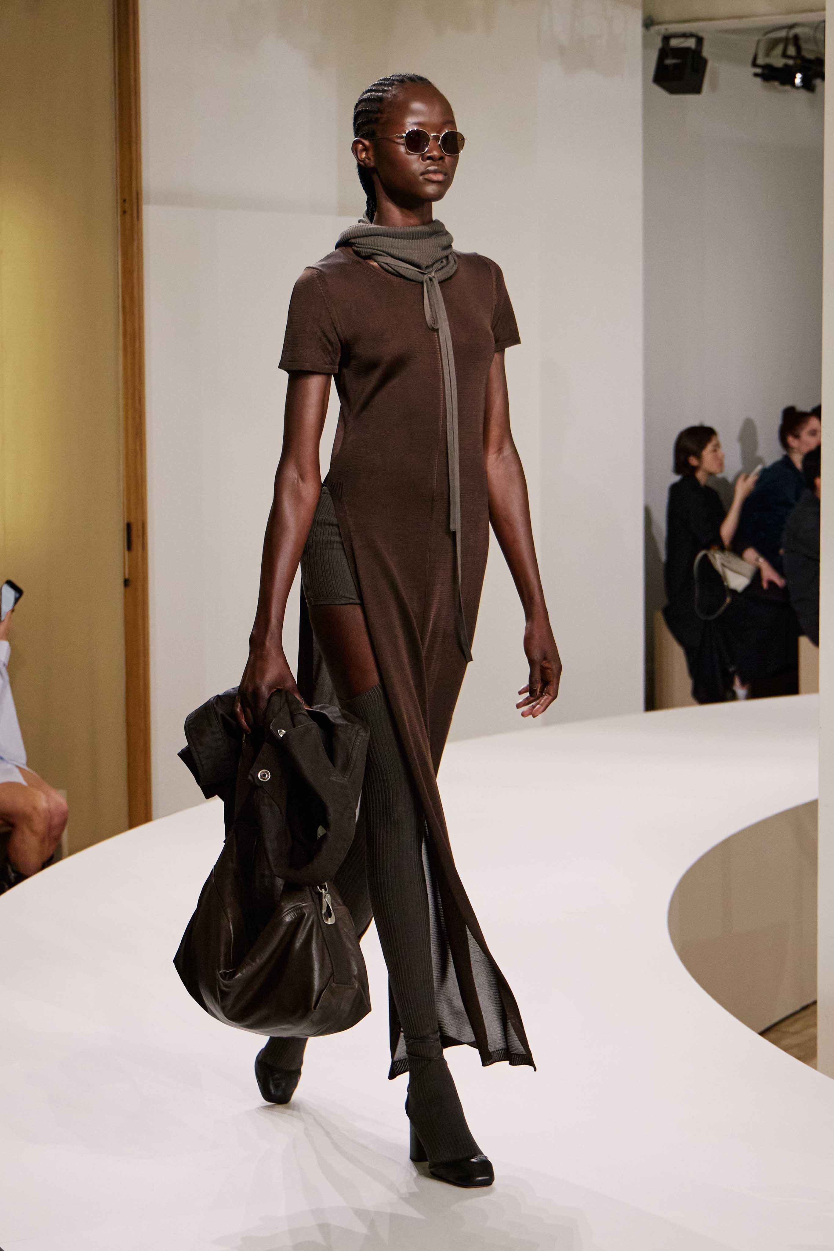 One can find some of the themes that run through the LEMAIRE wardrobe: soft tailoring revisited in light, supple fabrics, workwear imagined in refined materials, loose-fitting cuts following fitted lines, and slender attitudes that enrich the wardrobe with a new sensuality.
