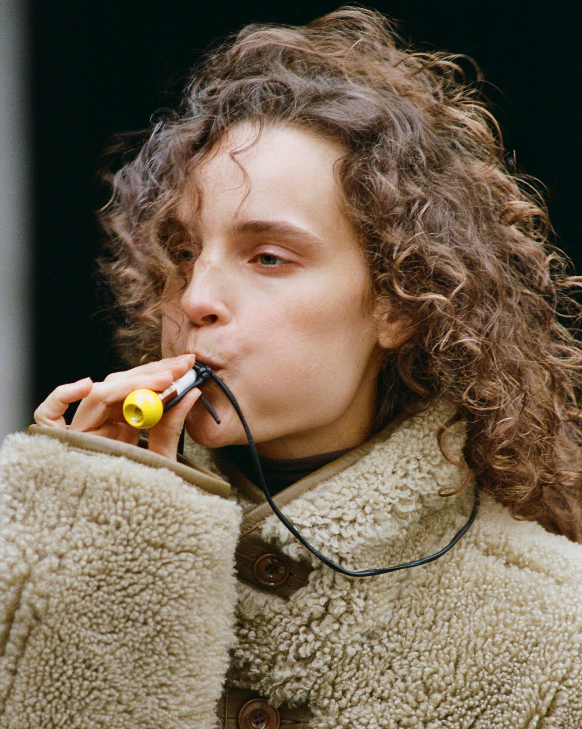 Fitted with a knotted leather cord, the calls can be worn around the neck or attached to other accessories. Each is engraved with a serial number, making it one of a kind.For the Fall/Winter 2023 collection, 25 whistles each were chiseled for four birds: the Goldfinch (carduelis), the Seagull (laridae), the Tern (sterninae) and the Swallow (hirundinidae). 10 of each of the Wagtail (motacilla) and the Cuckoo (cuculidae) were later editioned for the Spring/Summer 2024 collection.