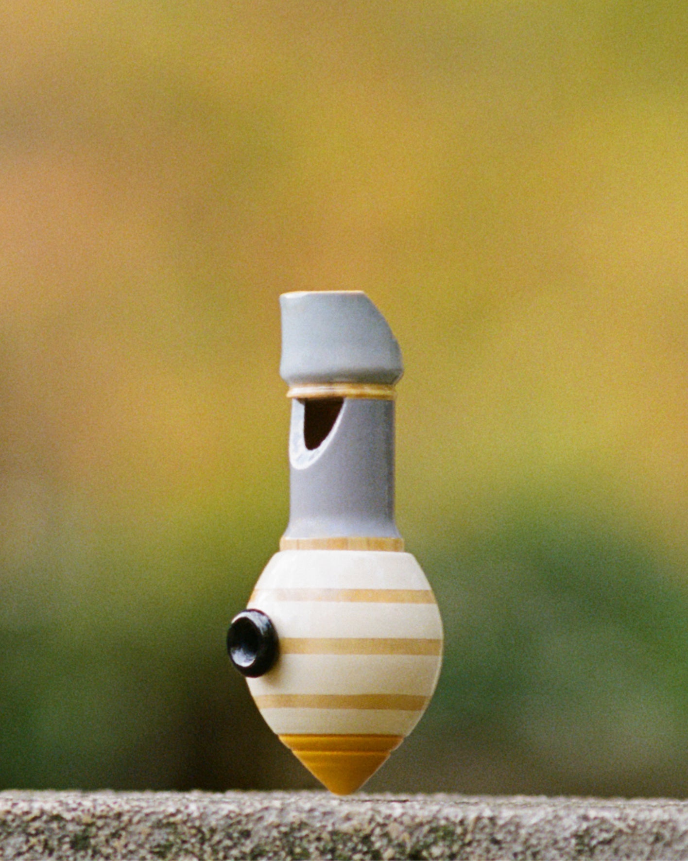 The handcrafted bird calls are made from locallysourced wood – beech, maple, and ash – using artisanal methods. They are then carefully painted andlacquered by hand to reflect the plumage of the birdwhose sound they imitate.