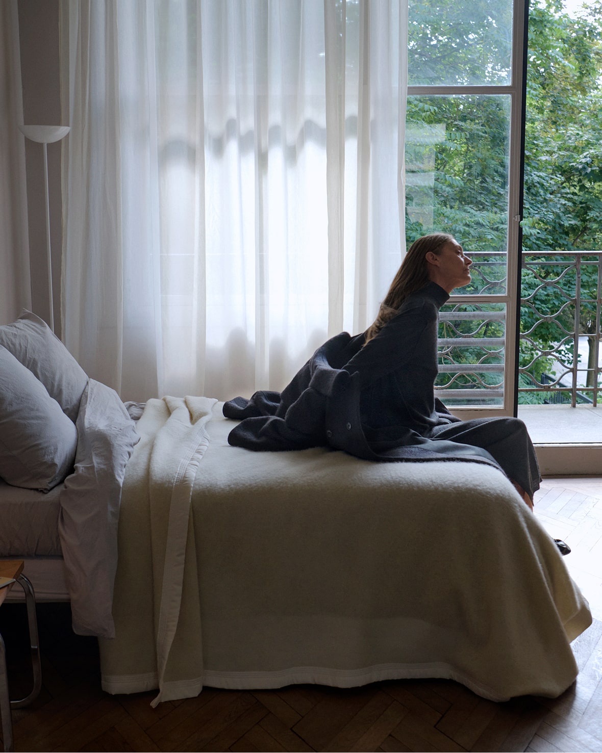 This interstice is a recurring theme in LEMAIRE’s wardrobe, where clothes are designed to extend the comfort of home. Here, new hybrid pieces with a domestic feel come to life: robe-coats, pyjama shirts, lazy knits in yak and alpaca wool.