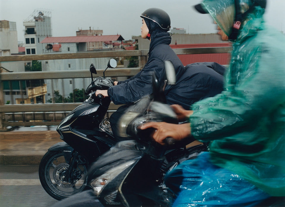 This series is an extension of trên yên xe, meaning "on the saddle of a running vehicle" in Vietnamese, a photographic journey made by Harvilahti in 2023. Half notebook, half optical illusion, a sense of place, a sense of time, a sense of tune invites us to enter into the flow of images, to journey up and down roads and bridges in pursuit of individuality and mysterious cinematography.