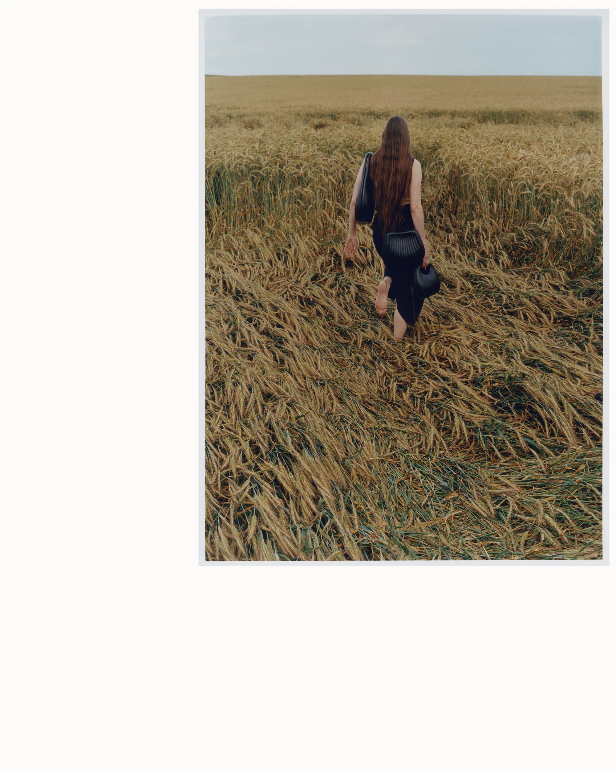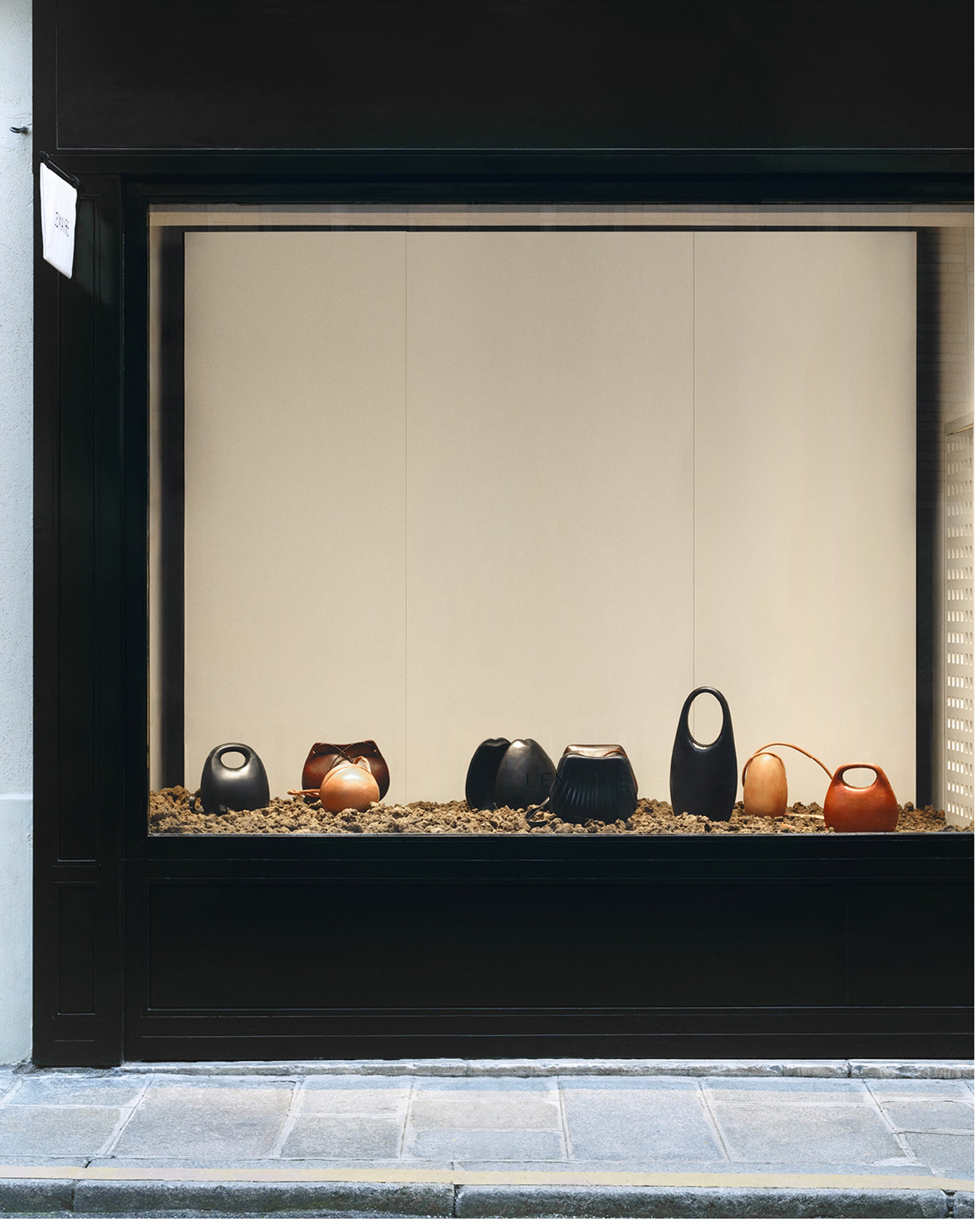 Carlos Peñafiel’s unique creations echo the world of LEMAIRE, questioning the function of everyday objects and drawing on the skills of traditional craftsmanship. Two accessories born of this relationship – the Carlos bag and the Egg bag – have been included in the collections.The exhibition also reveals a series of allegorical purses, featuring a bust, a shell, and a castanet – designed by the artist and produced in a limited series. One of the techniques used by Carlos Peñafiel involves pressing moistened leather in a mold to obtain the desired shape.