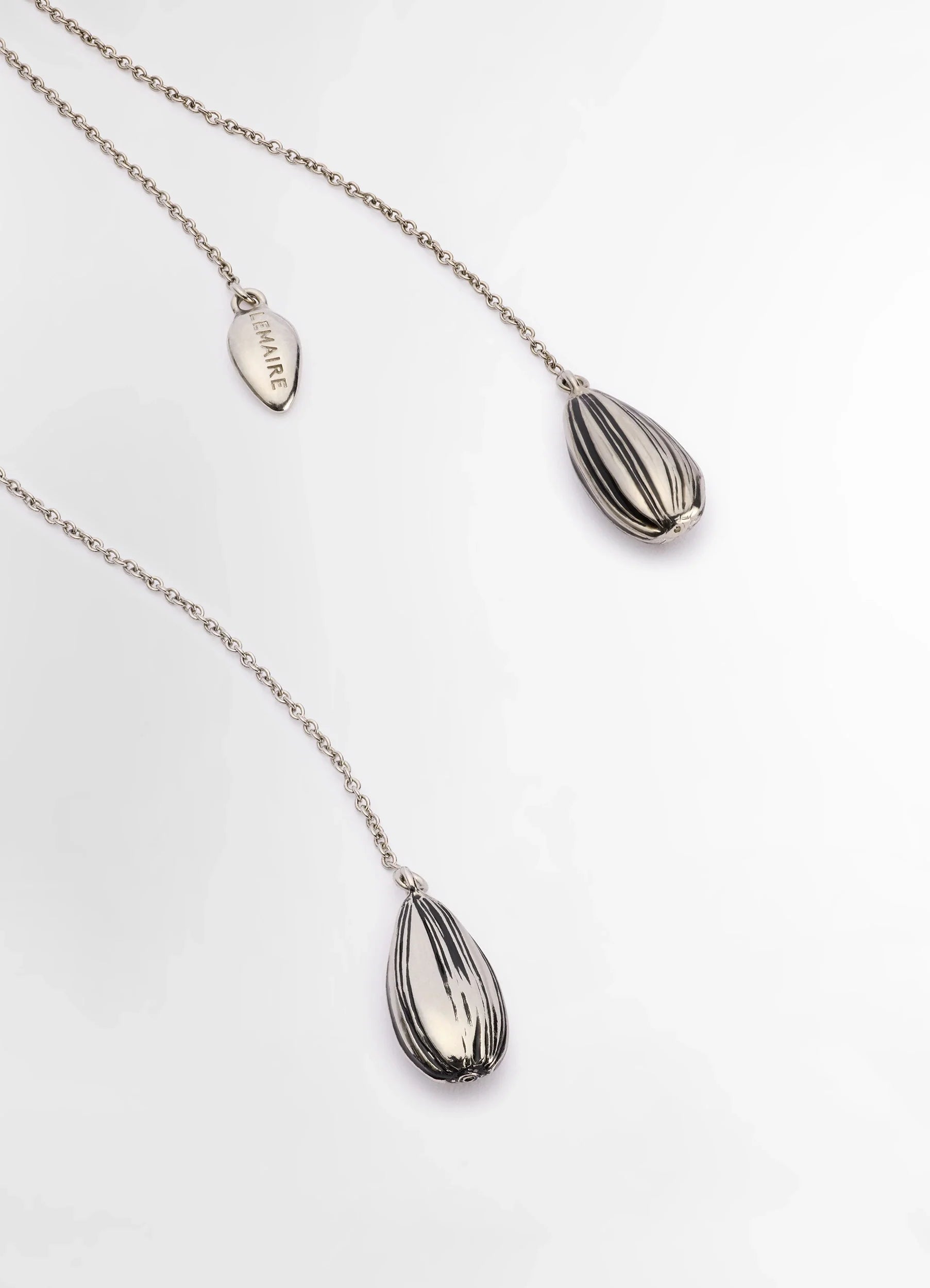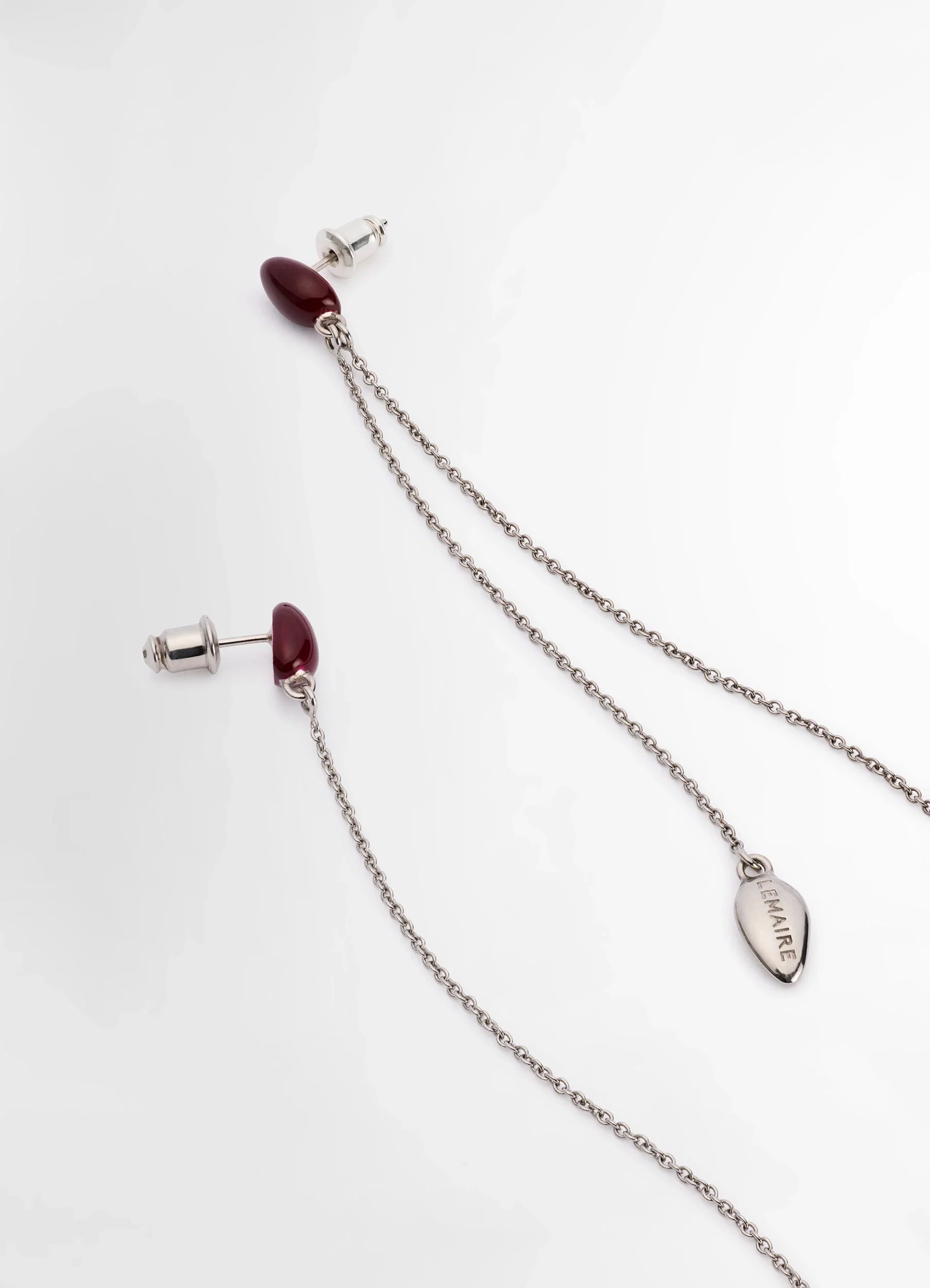 The Girasol line is inspired by the sunflower seed, and presents it as elegant jewelry with a raw, handcrafted touch. This pair of asymmetrical dangling earrings is crafted in silver-plated brass with contrasting resin details.