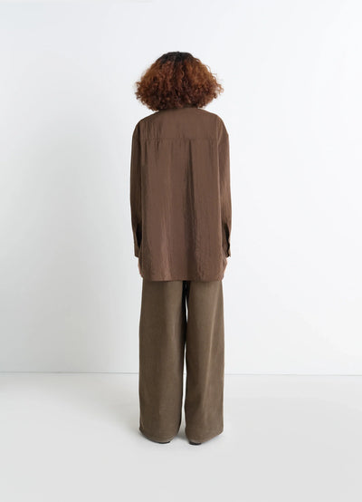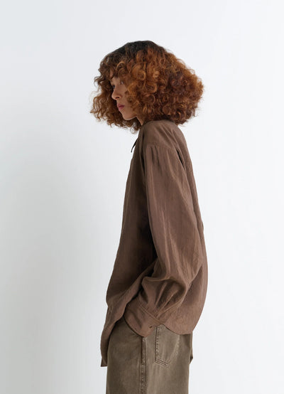 This long, oversized shirt is inspired by Lemaire's love for movement and features a necktie-style tie that can be tied or left loose. It is crafted in a dry silk blend, a classic house fabric with a soft hand and slightly crinkled texture.
