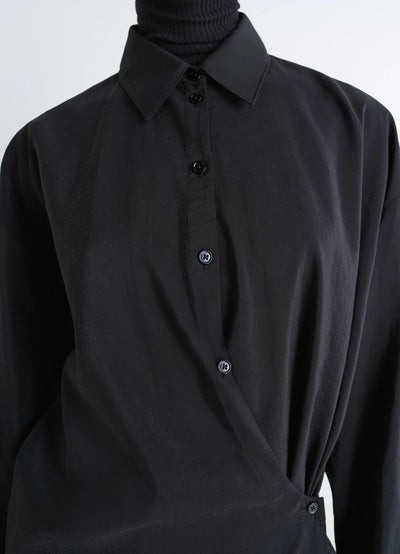 This dress is part of the Twisted family emblematic of the Lemaire wardrobe. It is crafted in a dry silk blend, a classic house fabric with a soft hand and slightly crinkled texture.